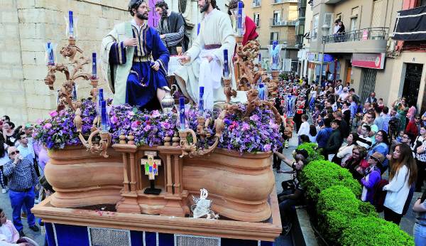 Parecía mantenerse inalterable la emoción que ya se vivió en el barrio en la tarde de Domingo de Ramos. La cruz de guía alcanzaba Senda de los Huertos en el momento en que la cuadrilla de costaleros se hallaba inmersa en rezos internos de preparación a la estación de penitencia. Una vez tomadas las posiciones, a golpe de llamador, se levantó el paso de misterio del Lavatorio. Este año, Jesús Divino Maestro y San Pedro Apóstol contaban con la presencia de San Juan y Santiago. Estos últimos, siendo obra del imaginero Antonio José Martínez Rodríguez, recibieron de primera mano la lección de humildad y entrega que el Divino Maestro difundió por las calles de Jaén.