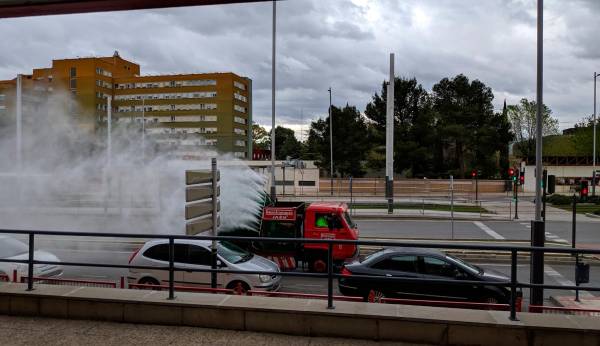 Un periodo clave. La ciudad entra mañana en la segunda semana de confinamiento ante la expansión del covid-19 y los operarios de la empresa FCC, contratada por el Ayuntamiento, se afana en desinfectar todas aquellas zonas en las que la posibilidad de contagio es mayor debido a la cantidad de personas o posibles aglomeraciones.