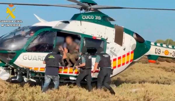 La Guardia Civil ha detenido a diez personas cuando se encontraban descargando 3.520 kilos de hachís distribuidos en 88 fardos en una embarcación próxima a la costa de Huelva durante una operación en la que se han intervenido además dos vehículos y una embarcación. Según informa el Instituto Armado en un comunicado, la interceptación de la embarcación se produjo tras detectar una narcolancha que se aproximaba a la costa de Huelva, donde le esperaba otra embarcación panelable para indicarle la ruta precisa que debía seguir para evitar encallar en zonas de escasa profundidad. Tras comprobar que la descarga de la droga en tierra firme iba a ser inminente, la Guardia Civil estableció un dispositivo de vigilancia para detener a los autores e incautar la droga. Durante el dispositivo, los agentes comprobaron cómo ambas embarcaciones iban rumbo por los caños y que, en un punto concreto, comenzaron a realizar el traspaso de la droga desde una embarcación a otra. Posteriormente, la embarcación panelable continuó la navegación hacia tierra firme mientras que la narcolancha tomó rumbo mar abierto. Una vez que la embarcación panelable tomó tierra, los miembros de la organización comenzaron con la descarga de la droga, momento en que los agentes procedieron a la detención. Durante la intervención policial, los detenidos emprendieron la huida adentrándose a la zona de marisma para intentar escapar siendo finalmente localizados.