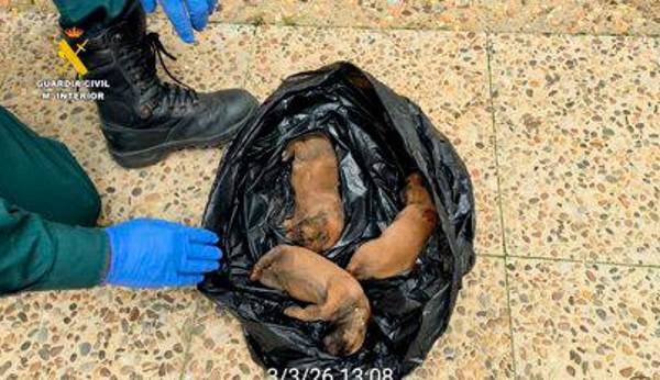 La Guardia Civil investiga a una persona el Almonte (Huelva) por su presunta implicación en un delito contra los animales, ya que arrojó a los cachorros que había parido su perra a un contenedor de basura. Según ha indicado el Instituto Armado en una nota de prensa, los hechos sucedieron el pasado 27 de febrero, cuando agentes del Servicio de Protección de la Naturaleza recibieron aviso de un ciudadano en el que comunicaba la existencia de siete cachorros abandonados en un contenedor de basura, cinco de ellos fallecidos y dos con vida, en un paraje de Almonte (Huelva). Por todo ello comenzaron las investigaciones, siendo localizada una perra en las inmediaciones con signos evidentes de haber parido recientemente, a la cual se le tomaron muestras de ADN para poder determinar si había parentesco con los cachorros encontrados, contándose con la colaboración del Ayuntamiento de Almonte (Huelva), que remitió las citadas muestras a la empresa ADN Canino de la localidad de Xátiva (Valencia). Finalmente, recibidos los resultados, se corroboró que los cachorros eran hijos de la perra identificada, procediéndose a la investigación de su propietario, como supuesto autor de los hechos por un delito contra los animales. Las diligencias instruidas serán puestas a disposición de la Autoridad Judicial competente.