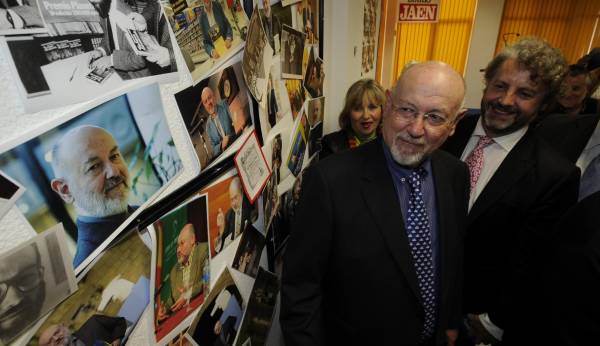El escritor disfruta de una exposición de páginas y fotos dedicada a su figura