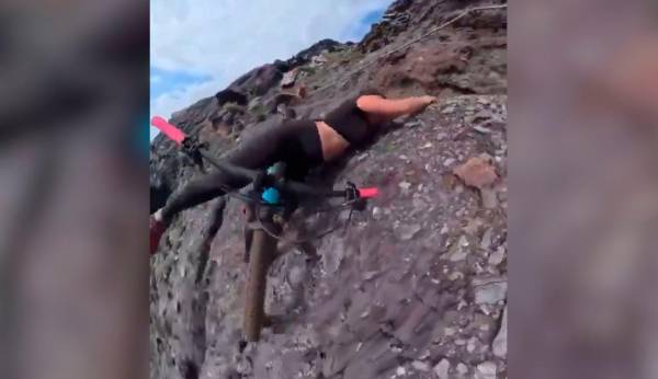 La espeluznante caída de una ciclista que casi acaba en tragedia