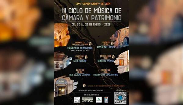 En total, serán seis conciertos en los que participarán 15 grupos y 50 alumnos y alumnas de las enseñanzas profesionales, quienes demostrarán la profesionalidad académica y artística que se cultiva en el centro jiennense. En estos conciertos se contará con la presencia de una guía turística que realizará al público una breve explicación sobre la historia del espacio y una visita guiada, permitiendo a los asistentes “empaparse” de la riqueza cultural de Jaén de una forma integral. El ciclo arrancará el próximo domingo 25 de enero a las 12:00 horas en el Paraninfo del Conservatorio, con un concierto inaugural a cargo de la Banda Municipal de Música de Jaén como invitada especial. A partir de ahí, la música recorrerá algunos de los rincones más bellos de la capital.