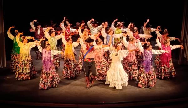Su presencia en el Teatro Darymelia se debe al hermanamiento establecido con la Asociación “Lola Torres”, y los extremeños deleitaron al público con “un recorrido desde arriba hasta abajo de Extremadura”, con piezas como Popurrí Verato, Esparragosa, Fandanguillo de Gredos, Rondeña de Orellana o Fandangos de mi tierra.