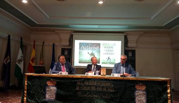 Maeso de la Torre se desplazó desde Cádiz, donde reside, para hablar a los presentes sobre su última obra ”Al Gazal, el viajero de los dos orientes”. Tras una muy afectuosa presentación de su gran amigo Emilio Lara, De la Torre se introdujo en el mundo de su fascinante personaje, Yahía ben al Hakam, Al-Gazal, poeta andalusí de noble linaje que vivió a caballo entre los siglos VIII y IX, y fue un hombre singular, un adelantado a su tiempo. Al-Gazal fue descrito por su autor como un personaje único, un precursor de su tiempo, que combina facetas de militar, poeta, diplomático y humanista. Viajó a Bizancio desde Córdoba para negociar en secreto con el emperador y los piratas del Mediterráneo, participó en la defensa de Sevilla cuando esta ciudad fue asediada por los vikingos, navegó hasta Escandinavia y desempeñó un papel clave en la política de Abderramán II. En una novela trepidante, Maeso de la Torre recupera la trayectoria del viajero más extraordinario que ha dado nunca España. Una historia hipnotizante que ha atrapado a muchos lectores que ya disfrutan con su mezcla de rigor histórico, emoción y sensualidad y que, en su propia narrativa, en el alón de actos de “La Económica” de Jaén resultó igual de cautivado.