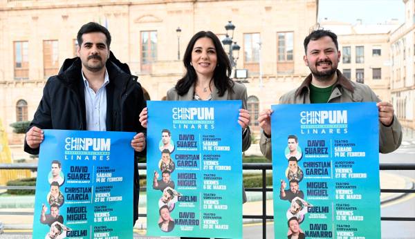 El Festival del Humor ChinChinPum, de Linares, propone cinco espectáculos entre los próximos 14 de febrero y 20 de marzo, protagonizados por los cómicos David Suárez, Christian García, Miguel Miguel, Guelmi y David Navarro. Tras el “éxito rotundo” que tuvo la primera edición, el Ayuntamiento, a través de las áreas de Juventud y Cultura, impulsa esta segunda “con el firme propósito de que se consolide” en la ciudad. “Este año ofrecemos una programación de mucho nivel, con humoristas muy reconocidos, y casi todas las actuaciones se celebrarán en el Teatro Cervantes, de tal manera que podamos acoger a más espectadores”, ha explicado el concejal de Juventud, Martín de la Torre.