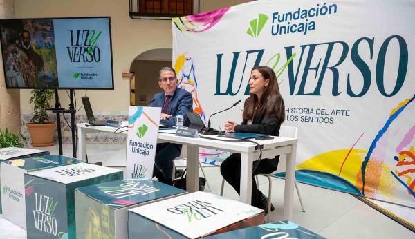 Fundación Unicaja acercará al público el legado de grandes pintores españoles como Velázquez, Goya, Murillo y Sorolla con el espectáculo Luz y Verso, un viaje sensorial por más de cuatro siglos de historia del arte que combina pintura, poesía y música en directo dentro de un domo geodésico 360 que recorrerá Andalucía y Ciudad Real. El proyecto tiene además un cariz solidario ya que la recaudación íntegra de sus entradas se destinará a diferentes entidades sociales. El director general de la Fundación Unicaja, Sergio Corral, y la directora de División de Actividades, Comunicación e Imagen de la institución, Cristina Rico, han sido los encargados de presentar este espectáculo en el Centro Cultural Baños Árabes Palacio de Villardompardo de Jaén, la ciudad en la que se estrenará el próximo viernes Luz y verso.