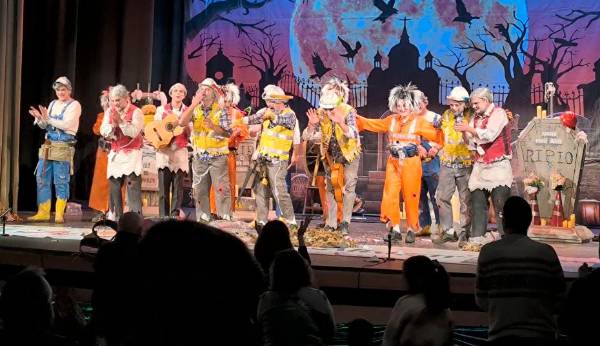 El segundo grupo en actuar ha sido la chirigota “Los Working Dead”, agrupación pertenece a la Asociación Carnavalera “Nos sobran las palabras” de Torredonjimeno, un municipio con gran tradición carnavalesca dentro de la provincia. La agrupación ha sido nombrada este año pregonera del Carnaval de Jaén 2026 por su gran vinculación a éste, ya que forma parte de la historia del carnaval de la capital desde hace más de 15 años. ‘Nos sobran las palabras’ han participado siempre en la COAJ y llevan muy dentro su amor por este carnaval y por esta ciudad. Un pase lleno de humor y crítica social que ha levantado las risas y aplausos del público. La tercera actuación ha corrido a cargo de la comparsa “La Provincia Marítima” procedente de Villacarrillo. Una comparsa joven con tan solo 5 años de trayectoria, pero cuyos integrantes son de edades dispares que van desde los 15 años, hasta pasados los 60. Han llenado el escenario con una defensa a ultranza de Jaén, viajando hasta el siglo XVIII cuando la historia relata que la Corona procedió a una tala masiva de árboles en la sierra de Cazorla, Segura y las Villas para la construcción de su flota de barcos. Así y disfrazados de gancheros (oficio desaparecido que consistía en el transporte de troncos de madera flotando por el río) con una puesta en escena muy sorprendente y cuidada, han salido a las tablas del Darymelia para hacer una alegoría sobre todo lo que ha aportado Jaén a lo largo de la historia.