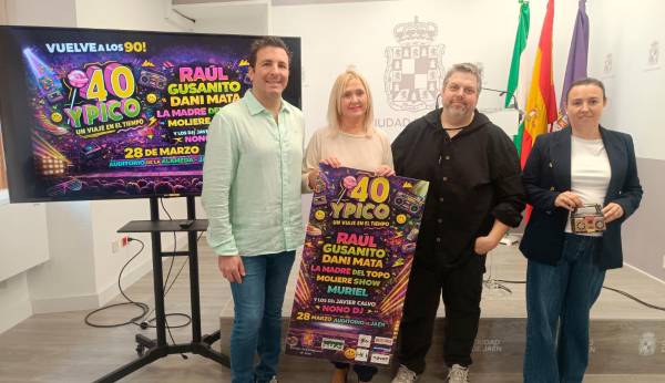 La primera teniente de alcalde y concejala de Cultura, Turismo y Fiestas, María Espejo, ha informado del Festival “40 y pico. Un viaje en el tiempo” que se celebrará el próximo 28 de marzo en el Auditorio de la Alameda. Un acto en el que el organizador por Nova Eventos que ha contado con la presencia del representante Nova Eventos, el jiennense Nono Castro, DJ y presentador, y el representante del grupo Moliere Show, David Martín han detallado los pormenores del concierto. La edil ha destacado que será todo un retorno a los años 90 y 2000 y ha animado a la ciudadanía a disfrutar de esta cita que tendrá lugar el próximo 28 de marzo en el Auditorio municipal de La Alameda. Un Festival que será presentado por el propio Nono García y Javier Calvo, otro DJ veterano y locutor de Jaén con más de 30 años de trayectoria del mundo de la música y la animación.