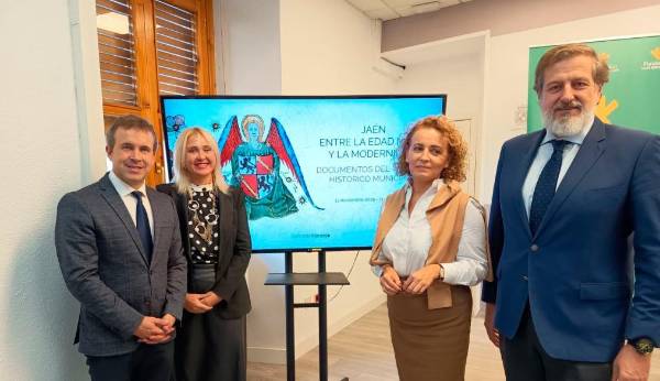 El alcalde de Jaén, Julio Millán, acompañado por la primera teniente de alcalde y la concejala de Cultura y Turismo, María Espejo, ha firmado un convenio de colaboración con el gerente de la Fundación Caja Rural de Jaén, Luis Jesús García Lomas, para la realización de la exposición “Jaén entre la Edad Media y la Modernidad. Documentos del Archivo Histórico Municipal (De Enrique IV a los Reyes Católicos)” que se inaugurará el próximo 13 de noviembre y permanecerá en los Baños del Naranjo hasta el próximo 11 de enero de 2026. Millán ha mostrado su agradecimiento a la Fundación Caja Rural de Jaén por “estar siempre con el Ayuntamiento en actividades de este calado cultural, histórico y patrimonial tan importante para la ciudad”. “Esta no es una exposición más, es una muestra importantísima, de las pocas que se pueden realizar a través de un Ayuntamiento a lo largo de su historia y que nos permite que, por primera vez, se puedan poner en valor y exhibir ante la ciudad de Jaén, un total de 16 documentos históricos que, junto con piezas cedidas por la Catedral, constituirá uno de los acontecimientos más importantes y fundamentales de este 1200 aniversario”.