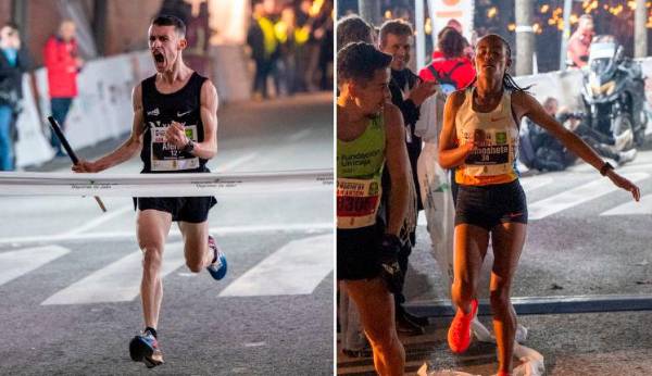 El marroquí supera a Dani Arce en el último kilómetro y la etíope repite el triunfo