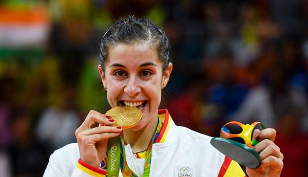 Carolina Marín posa con su medalla de oro en los Juegos Olímpicos de Río de Janeiro de 2016. Archivo. / Diego G. Souto.