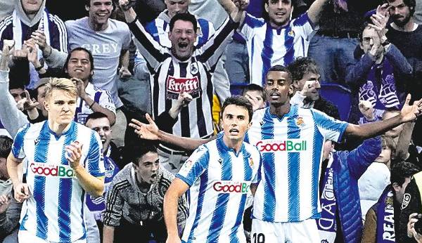 Un agarrón del “5” culé a Diego Llorente, en un córner, lo decretó el árbitro Javier Alberola Rojas como pena máxima. Desde el VAR ratificaron tal decisión, a pesar de que Llorente también había agarrado levemente a su contrincante, y Oyarzabal anotó el 1-0 sin problemas. Respondió el cuadro blaugrana casi de inmediato, por obra de Luis Suárez al enganchar una volea desde fuera del área. Ese disparo del uruguayo puso a prueba las manoplas de Álex Remiro, cuyo rechace no supo aprovechar Ivan Rakitic en segunda instancia. Poco a poco, la Real agotó el combustible del primer tiempo y su rival empató en el minuto 38. En un contragolpe guiado por Luis Suárez, éste pasó hacia la izquierda para la llegada de Antoine Griezmann; y el excanterano “xuri-urdin” ganándole la carrera a Joseba Zaldua y a Igor Zubeldia, “picó” el balón para batir a Álex Remiro en su salida. Fue una definición llena de clase, aunque sin celebración del jugador francés por su pasado en la Real.