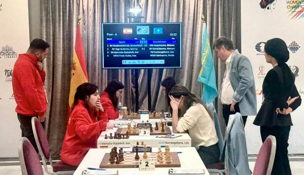 Primera fase acabada después de tres días intensos en el Mundial Femenino de partidas rápidas. Las cinco rondas disputadas en el hotel Aníbal de Linares sirvieron para decidir las 8 selecciones que este viernes disputarán los cuartos de final. En esta primera criba no pudo superar el corte el combinado nacional, que perdió por 3,5 a 0,5 contra Azerbaiyán en la quinta y última ronda. España terminó penúltima del grupo A con sólo una victoria conseguida y fue ante Perú por 2,5 a 1,5, que también fue eliminada. España no tuvo opciones ante los azerbaianos, invitados a última hora al no poder competir Argelia por problemas con los visados. El único medio punto de la selección lo consiguió la canaria Sabrina Vega, la mejor representante en el tablero de la selección española con tres puntos sumados de cinco posibles, después de igualar con las piezas negras contra Govhar Beydullayeva. Mientras, Sara Khadem, Ana Matnadze e Inés Prado perdieron contra Ulviyya Fataliyeva, Khanim Balajayeva y Gulnar Mammadova. El equipo de la Federación Internacional de Ajedrez (FIDE), formado por ajedrecistas rusas que no pueden competir con su bandera debido a las sanciones por la guerra de Ucrania, dominó el grupo A con pleno de 10 puntos y se clasificó a cuartos junto con Kazakistán, Estados Unidos y Azerbaiyán. En el B los cuatro equipos que se clasificaron fueron Georgia, vigente campeón del mundo, China, India y Uzbekistán, mientras que Francia y Ucrania quedaron eliminadas y no estarán en esta fase.
