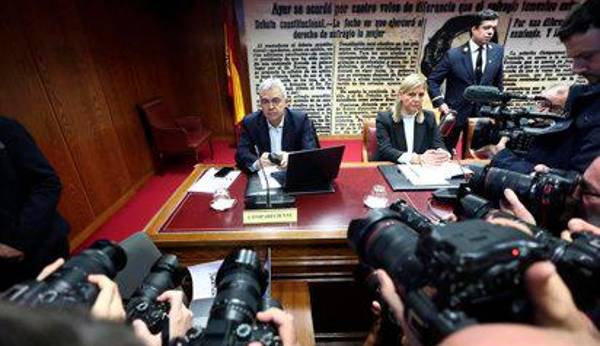 “Aquí queda acreditado que se está persiguiendo a un diputado de forma directa con restricción de derechos fundamentales y sin justificación concreta alguna. La forma de perseguir es la propia de la Inquisición, no se investiga ningún derecho concreto, se investiga a varias personas aforadas y el procedimiento de investigación no respeta ninguna garantía”, ha añadido. Ataviado con una chaqueta negra y camisa blanca sin corbata, Cerdán ha llegado a la Cámara Alta poco antes de las 9.50 horas de la mañana, acompañado de su abogado. A la entrada, el exdirigente socialista ha asegurado que afronta su declaración “con total normalidad”. “Ahora entraré a declarar”, ha señalado ante una nutrida presencia de periodistas. Dentro de la sala Clara Campoamor, donde se celebra la sesión, el exsecretario de Organización del PSOE ha permanecido de pie, de brazos cruzados y con gesto serio, dejándose fotografiar y grabar por los reporteros gráficos durante algo más de diez minutos.