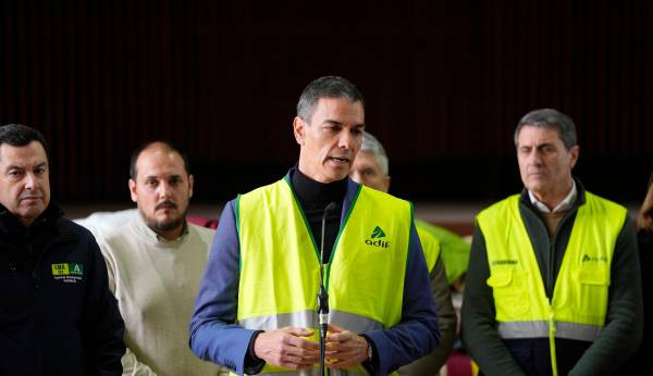 El presidente ha trasladado esta decisión en el curso de una comparecencia ante los medios, tras visitar la zona cero del accidente ferroviario y conocer el estado de situación de la emergencia, así como la última hora de los trabajos que los distintos equipos están llevando a cabo. Su comparecencia ha sido la siguiente: “Muchas gracias presidente (Moreno), vicepresidenta, ministros, alcalde, presidente de la Diputación, y gracias en primer lugar a los medios de comunicación por atender esta estas declaraciones y, por supuesto, también por la labor de servicio público que están haciendo para poder informar a todos los ciudadanos y ciudadanas del trágico accidente que se sufrió en el día de ayer. Antes se ha dicho, yo me sumo a ello, que hoy es un día de dolor para toda España, para todo nuestro país, y nuestro pensamiento, si va dirigido a alguien, es a las víctimas, a sus familiares, a los cuales les queremos enviar nuestro recuerdo, nuestro pensamiento, nuestra solidaridad y todo el abrazo de la sociedad española en estos momentos que tienen difícil descripción o definición con palabras. Por supuesto, también nuestro deseo de una pronta recuperación a todas las víctimas de esta tragedia. Toda tragedia exige por parte de la sociedad a sus instituciones dos cosas que se han señalado: la primera, unidad en el dolor, y la segunda, unidad en la respuesta. Y creo que desde el mismo momento en el que se produjo esta tragedia, el Estado ha actuado como tenía que actuar: unido, coordinado y con lealtad, como se ha dicho antes. Y quiero subrayar y reconocer la labor de todos los servidores y servidores públicos, de los servicios sanitarios, de los servicios de emergencias, de las Fuerzas y Cuerpos de Seguridad del Estado, desde el Ayuntamiento hasta, por supuesto, la Administración General del Estado, y reconocer —porque han estado trabajando, me consta, estas largas horas de la noche— su entrega, su profesionalidad y su humanidad, que creo que es muy importante también subrayarlo en este momento de tanto dolor, de tanta tragedia, en la que también empatizamos con el trabajo y la labor que han venido desarrollando y continúan desarrollando en el día de hoy.
