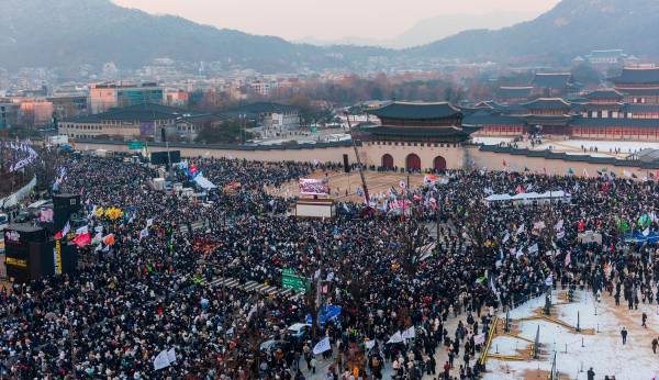 También ha habido llamamientos a la intervención del Tribunal Constitucional, para que actúe contra Yoon, y pidiendo la disolución de su partido político, el Partido del Poder Popular (PPP). En la manifestación ha participado Lee Jae Myung, el líder del principal partido de la oposición, el Partido Democrático. Mientras, simpatizantes de Yoon se han concentrado cerca de la Estación de Gwanghwamun, apenas a un kilómetro de distancia de la protesta contra el exmandatario. “La destitución es inválida” o “Detención de Lee Jae Myung” eran algunas de las frases inscritas en las pancartas. “No hemos podido impedir la moción de destitución contra el presidente de nuestro partido. Me disculpo ante los ciudadanos patriotas honorables”, ha afirmado ante los participantes el diputado del PPP Yoon Sang Hyun antes de arrodillarse ante la multitud. La Policía ha cifrado en unos 35.000 los asistentes, mientras que los convocantes elevan la participación a cerca de tres millones de personas.