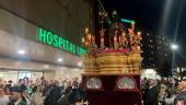 La hermandad Caridad y Salud deja atrás la carrera oficial para continuar por la Plaza de San Francisco, Álamos, Doctor Eduardo Arroyo, Plaza de loa Jardinillos, Millán de Priego, Castilla, Arquitecto Berges, Ejército Español, Juan Pedro Gutiérrez Higueras,...