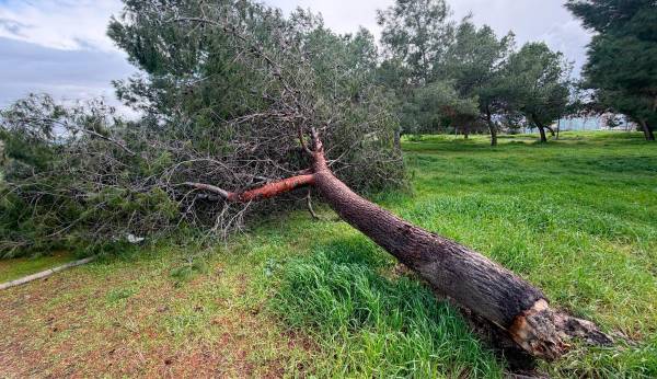 Uno de los árboles arrancados a causa del fuerte viento. / Francisco J. Marín.