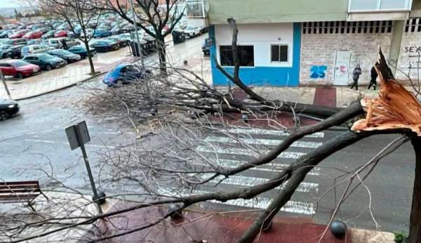 Cae un árbol en la calle Principado de Asturias por las fuertes rachas de viento