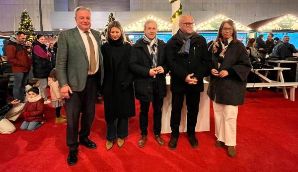 El espacio navideño instalado junto a El Corte Inglés, en la plaza Empresario Diego Torres, quedó inaugurado este viernes en un acto que reunió a representantes institucionales y a decenas de familias que no quisieron perderse el inicio de una de las citas más esperadas de la Navidad jiennense. El alcalde, Julio Millán, acompañado por la segunda teniente de alcalde y diputada de Cultura, África Colomo, y por la concejala de Promoción Económica y Comercio, Isabel Cano-Caballero, acompañó al director de Comunicación del centro comercial, Miguel Sanz, en esta apertura oficial. También asistió el subdelegado del Gobierno, Manuel Fernández, arropando un evento ya tradicional en el calendario festivo de la ciudad.