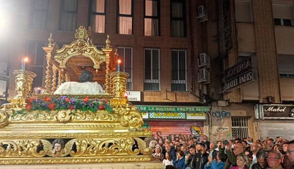 El Cristo Yacente procesiona por la calle San Clemente. / A. Claudio.