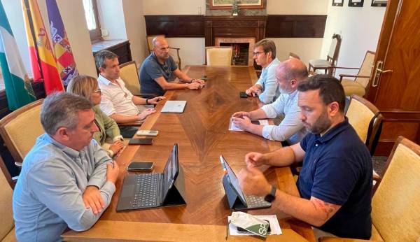 El alcalde de Jaén, Julio Millán, junto a los concejales de Medio Ambiente y Patrimonio, José María Cano, de Participación Ciudadana y Seguridad, María del Carmen Angulo, y de Mantenimiento Urbano, Javier Padorno, se han reunido con una representación de la asociación de vecinos “Expansión Norte,“ del barrio del Bulevar, con su presidente, Manuel López, y miembros de la directiva. La asociación de vecinos ha trasladado al Ayuntamiento su interés por conocer proyectos previstos para el barrio así como ha trasladado sus necesidades en mejora así como ha planteado sus propuestas en dos asuntos de su interés como son la implantación de la zona de estacionamiento regulado (ORA) en el barrio o el proyecto de integración ferroviaria con intermodal.