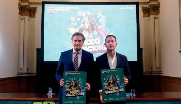 Fundación Unicaja ha presentado este lunes la nueva campaña para sus Campus 2026 bajo el lema “Activa tu modo vacaciONes”. En esta nueva edición, la Fundación oferta cerca de 7.000 plazas para sus siete campamentos: Campus Nieve (Granada), Sabinillas, Baloncesto (Málaga), Náutico (El Puerto de Santa María), Ronda, English Camp y Tech&Play Camp (Ronda). El director de Actividades Sociales de la Fundación Unicaja, Gerardo Lerones, y el responsable de Deportes, Tiempo Libre, Medio Ambiente y Voluntariado, Manuel Dorado, han presentado hoy la nueva temporada de los Campus que potencia el programa de ocio y formativo con nuevas actividades acuáticas y de animación y talleres de Inteligencia Artificial en la segunda edición del Tech&Play Camp.
