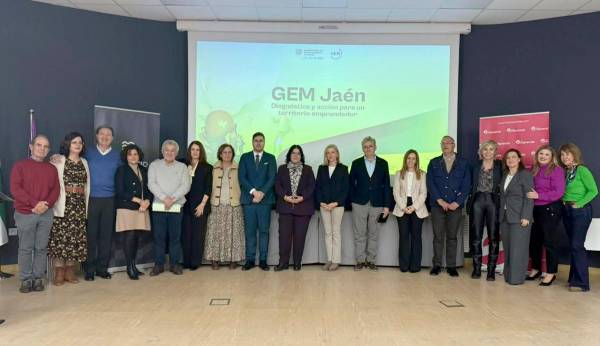 La Cátedra Universitaria de Emprendimiento Fulgencio Meseguer de la Universidad de Jaén ha celebrado una jornada bajo el título “GEM JAÉN-Diagnóstico y acción para un territorio emprendedor”, con el objeto de presentar el informe GEM JAÉN 2024-25 y abrir un espacio de diálogo con municipios y agentes del ecosistema emprendedor provincial. El informe muestra algunos datos reveladores sobre el ecosistema del emprendimiento en la provincia de Jaén. Así, la población jiennense destaca por valorar positivamente su capacidad y potencial para emprender (54%), por encima de la media de Andalucía y de España, y por la reducción en la importancia de la barrera que el miedo al fracaso supone a la hora de tomar la decisión de emprender (48%). No obstante, la escasa percepción de oportunidades, del 21% (por debajo de la media andaluza y española) es el talón de Aquiles del potencial para emprender. La jornada comenzó con la bienvenida a los asistentes a cargo de Luis Miguel Carmona Ruiz, Diputado de Empleo y Empresa de la Diputación Provincial de Jaén, que ha destacó en su intervención el papel que desempeñan los agentes institucionales en el apoyo al emprendimiento y a la creación de empleo en el sector privado.