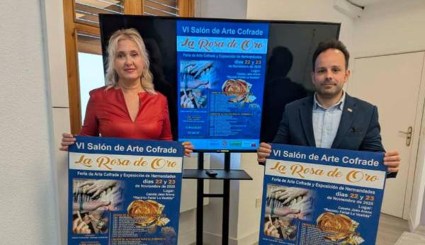 La capital se convertirá en cuna del arte cofrade a nivel nacional gracias a la celebración de la sexta edición del Salón de Arte Cofrade ‘La rosa de Oro’, que tendrá lugar los próximos días 22 y 23 de noviembre en la caseta municipal “Jaén Arena”, ubicada en el recinto ferial Alfonso Sánchez Herrera. La concejala de Cultura y Turismo, María Espejo ha presentado esta cita, junto con Miguel Ángel Alcántara, organizador de la misma y gerente de Arte Sacro Alcántara-Taller de Bordados. Espejo ha subrayado que este Salón de Arte Cofrade “tiene un carácter bienal (el último se celebró en 2023) y ha saltado fronteras para dar a conocer el patrimonio de las hermandades y cofradías de la provincia, puesto que, tras cinco ediciones, se ha expandido hasta adquirir un carácter andaluz e incluso nacional”.