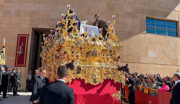 La cofradía de la tarde del Domingo de Ramos ha iniciado su itinerario bajo la atenta mirada de los fieles que se han agolpado en la entrada de la Parroquia de San Juan Pablo II. Jesús Salvador, acompañado de los apóstoles, y María Santísima de la Caridad y Consolación, ya se encuentran desfilando por la capital. Se espera que a las 19:00 horas inicien su recorrido en la carrera oficial.