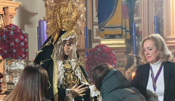 El Santuario Camarín de Jesús acoge hoy y este miércoles el tradicional besamanos a María Santísima de los Dolores, una de las citas devocionales más destacadas para los fieles y cofrades de la ciudad. Durante ambas jornadas, los devotos podrán acercarse a venerar la imagen en horario de 9:00 a 13:00 horas por la mañana y de 17:30 a 20:00 horas. La jornada del miércoles contará además con uno de los momentos más emotivos del programa. Tras la celebración de la eucaristía tendrá lugar el acto de presentación de niños y niñas menores de dos años ante Nuestro Padre Jesús Nazareno por medio de su madre, María Santísima de los Dolores. Se trata de una tradición muy arraigada en la ciudad en la que las familias presentan a los más pequeños para ponerlos bajo su protección.