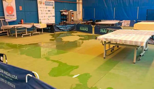 El club de tenis de mesa Hujase Jaén y la Asociación “Muévete por el Párkinson” han puesto en marcha el programa “Tenis de mesa y salud”. Se trata de una terapia muy beneficiosa, puesto que ayuda a paliar los trastornos del movimiento que produce esta enfermedad. Por ello, el club tiene alquiladas las instalaciones de La Salobreja para entrenar tanto los afectados por Parkinson como los propios jugadores del club. Pero el mayor problema al que se enfrentan todos los que acuden al lugar es que, cada vez que llueve, se inunda la sala por goteras que hay viéndose obligados a suspender la actividad. Vea el vídeo y compruebe el aspecto que presentaba este lunes por la tarde la sala de entrenamientos.