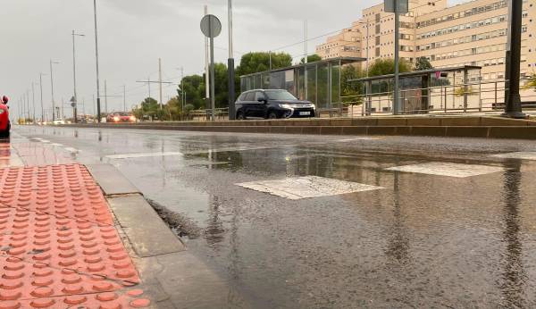 Estampa de la lluvia cayendo, acompañada de cielos cubiertos, en la Carretera de Madrid, en Jaén. / Diario JAÉN.