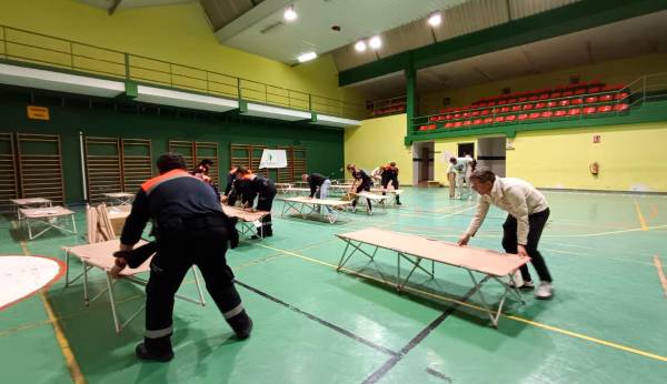 Voluntarios de Cruz Roja y de Protección Civil, apoyados por personal de Patronato de Deportes, Policía Local para control y vigilancia del buen desarrollo de la noche, y coordinación de técnicos de Asuntos Sociales y el Jefe de Bomberos y Emergencias, Antonio Tobaruela, supervisaron junto a las autoridades la instalación en su primera jornada. Protección Civil y Cruz Roja junto a policía se encargarán cada noche de supervisar este dispositivo de emergencia que se monta a partir de las 22.00 horas cuando cesa la actividad deportiva del complejo y se desmonta temprano. A las camas de campaña se suman sacos de dormir, un kit de aseo y una bolsa de comida con agua, zumo y galletas entre otros productos, que se entregan a los usuarios de este dispositivo de emergencia. En paralelo, el Centro de Atención Municipal de Carretera de Granada, que sí dispone de servicio de comida, registró ayer el 100% de sus plazas, ocupadas 164 por personas temporeras y el resto hasta 170 por personas transeúntes sin hogar.