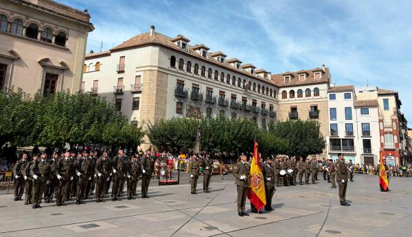 La cita ha arrancado a las 12:00 horas con la incorporación de la fuerza y de la bandera, en una plaza abarrotada en la que el sol ha acompañado con intensidad. Para este acto se han empleado dos enseñas: la del Regimiento Acorazado Córdoba 10 y del Regimiento de Infantería La Reina 2. Entre tambores y trompetas, los asistentes han guardado silencio para escuchar las palabras de apertura, mientras familiares y curiosos se han agrupado en torno al espacio reservado para los participantes. El general de brigada Fernando Ruiz Gómez, jefe de la Brigada Guzmán el Bueno X, ha presidido el acto junto a numerosas autoridades civiles y militares. Uno a uno, los jurandos, con la mano en el corazón, han ido pasando frente a la bandera para realizar la reverencia y darle un beso que simboliza su compromiso con España. Mujeres y hombres, mayores de 18 años, han renovado así el juramento de guardar la Constitución, ser leales al Rey y entregar la vida en defensa del país si fuera preciso. En apenas unos segundos, cada uno ha recibido también su certificado acreditativo, un recuerdo tangible de un momento cargado de significado.