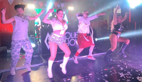 Una despedida a la altura. Esa podría ser la conclusión de la última actuación de la Feria y Fiestas de San Lucas 2025. Tras la entrega de los icónicos Premios Trepabuques, el escenario se despejó para el aterrizaje de Moliere Show, que puso a bailar hasta al más tímido. El grupo se presentó por todo lo alto, con una puesta en escena estratosférica, juegos de luces futuristas, humo, confeti y vestuario acorde con el espectáculo que esperaban todas las personas congregadas en la caseta de Diario JAÉN. Comenzó algo tibio el público, pero con el paso de los temas, las mezclas y la gran actuación de Raúl López, Enma Moralez, David Martínez, Diana Kasais y Maythe Leiva, el desparpajo afloró con fuerza.