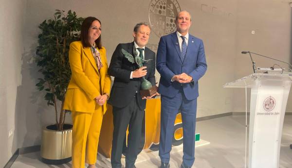 A continuación, tomó la palabra la vicerrectora de Cultura de la UJA, Marta Torres. Ella fue la encargada de desgranar los méritos del homenajeado, dibujando con todo lujo de detalles la trayectoria del que es hoy un referente internacional en la medicina cardiovascular. Director del Departamento de Cardiología de Quirónsalud Madrid, jefe de servicio en varios hospitales universitarios, catedrático de Medicina Cardiovascular y líder de múltiples proyectos pioneros. Cabrera acumula publicaciones científicas, libros fundamentales en la especialidad, proyectos punteros y cientos de conferencias, un currículum al que se suman múltiples reconocimientos nacionales e internacionales, incluyendo repetidas menciones en las listas de Forbes como uno de los mejores médicos de España.