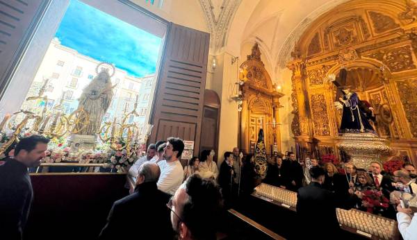 En este primer tramo de la romería, Santa Catalina tiene parada en el Camarín de Jesús para encontrarse con El Abuelo, produciéndose una estampa idílica entre dos de las imágenes más devocionales de la ciudad de Jaén.