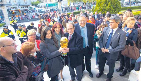 Miles de jiennenses desafiaron la lluvia para fotografiarse con el trofeo de la Selección Española