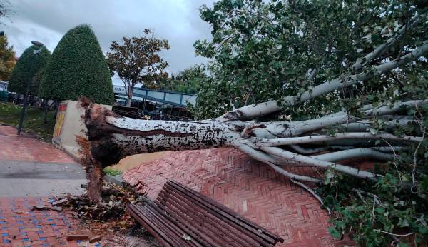 Un árbol de 25 años cae en el Bulevar tras los primeros vientos