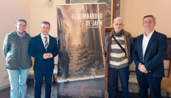 El Ayuntamiento de Jaén aplaude la iniciativa de un grupo de creadores jiennenses que ha promovido la edición de un documento audiovisual para rescatar la memoria del bombardeo de Jaén, uno de los episodios más trágicos y silenciados de la Guerra Civil en la ciudad. El proyecto, que el próximo 23 de abril se estrena en la capital jiennense “nace con el objetivo de recuperar la memoria histórica, dignificar a las víctimas y cubrir un vacío narrativo que hasta ahora solo había sido abordado desde conferencias y publicaciones escritas”, asegura el alcalde de la ciudad, Julio Millán, que ha recibido junto al edil de Mantenimiento Urbano, Javier Padorno, a los promotores de la iniciativa.