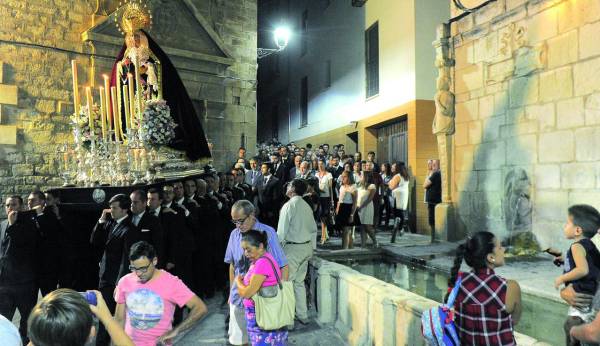 Bajo la luz de una luna creciente, el fervor de los fieles acompañó en su itinerario a la advocación mariana de Nuestra Señora de las Lágrimas por las sinuosas y exiguas calles del casco histórico hasta llegar a Santa Clara, donde la imagen permanecerá hasta mañana y hoy quedará expuesta para un besamano, entre las doce del mediodía y las dos de la tarde y desde las seis a las ocho. Entonces, comenzará la eucaristía.