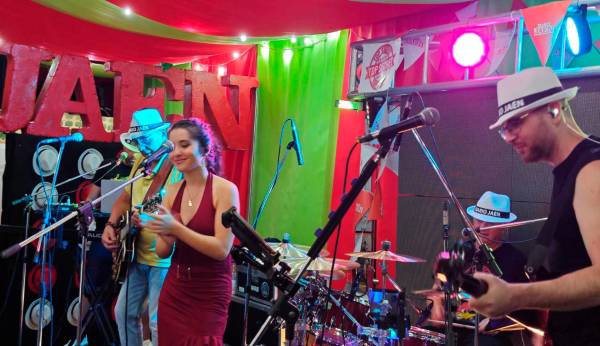 La caseta de Diario JAÉN (31-33) fue el escenario encargado del albergar ayer martes, 14 de octubre, una tarde cargada del mejor pop-rock nacional a internacional con la actuación del grupo Top Secret. El espectáculo musical se suma al listado de grupos que amenizan las tardes de ferias desde el sábado. Las instalaciones, completamente a rebosar, despertaron desde la primera nota el entusiasmo de todo el público.
