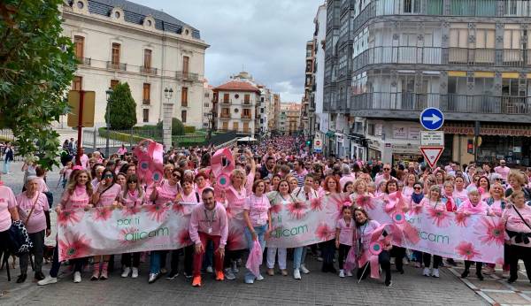Las calles del centro de Jaén se tiñeron este domingo de rosa con la marcha “Jaén se viste de Rosa”, organizada por la Asociación Jiennense de Cáncer de Mama (Ajicam). Se estima que más de 2.000 personas participaron en esta cita solidaria, que partió poco después de las 11:00 horas desde la Plaza de Santa María en un ambiente festivo, lleno de música, color y ganas de sumarse a la causa.