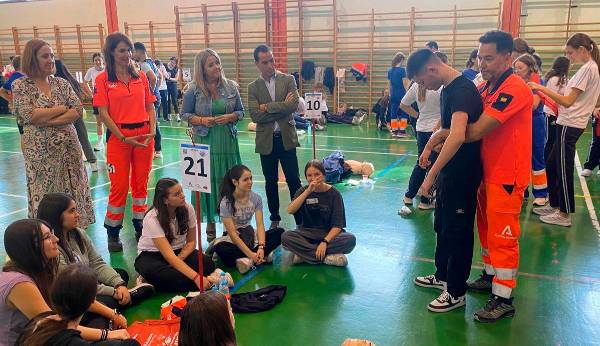 Un total de 1.500 jóvenes se han formado en RCP con motivo del Día Europeo de Concienciación ante la Parada Cardiaca. El Centro de Emergencias Sanitarias 061 y la Delegación Territorial de Salud en Jaén han organizado la duodécima edición del #cardiomaraton061 junto a la Delegación de Desarrollo Educativo y Formación Profesional y de Universidad, Investigación e Innovación. La Junta de Andalucía entrena en todas las provincias andaluzas a jóvenes, con la colaboración de un centenar de instituciones cuyos miembros se dan cita en ese día para dar formación a esta materia de forma voluntaria a más de 13.000 jóvenes andaluces. Estas jornadas han recibido la visita de la delegada territorial de Salud, Elena González, y del delegado de Territorial de Desarrollo Educativo y Formación Profesional y de Universidad, Investigación e Innovación, Francisco José Solano, que han estado acompañados por el director del Centro de Emergencias Sanitarias 061 de Jaén, Luisa Martínez. Con esta formación, que se ha celebrado en el IES Fuentezuelas, se pretende “aumentar el número de personas que conocen cómo actuar ante estas situaciones para poner en marcha la cadena de supervivencia en el menor tiempo posible y sensibilizar a toda población de la importancia de estar entrenado como primeros intervinientes ante una parada cardiaca, ha indicado González. Por su parte, el delegado Territorial de Desarrollo Educativo y Formación Profesional, así como de Universidad, Investigación e Innovación en Jaén, Francisco José Solano, ha resaltado “la importancia de la formación en materia de salud en los centros educativos, considerándola fundamental para fomentar desde edades tempranas la conciencia sobre la prevención, la actuación adecuada y la adopción de hábitos de vida saludables”. En esta línea, Solano ha señalado que la Consejería “ofrece una variada gama de programas educativos centrados en la salud, con el objetivo de situar los hábitos saludables como elemento clave en los proyectos educativos de los centros”. Asimismo, Solano ha agradecido la participación activa de los centros educativos en estas jornadas, una muestra del compromiso de la comunidad educativa con la salud y bienestar de los jóvenes, haciendo de estas iniciativas una experiencia formativa enriquecedora fundamental para construir “una sociedad más consciente, preparada y saludable”. En esta iniciativa participan todos los años una veintena de instituciones públicas y privadas en Jaén, que coordinados por el Centro de Emergencias Sanitarias 061, entrenan este año a unos 1.500 alumnos de educación secundaria en reanimación cardiopulmonar. Para ello, se han sumado año tras año docentes y monitores voluntarios. La parada cardiaca (PCR) es la principal causa de muerte prematura en España y en los países de nuestro entorno. En la mayoría de los casos, su origen es cardiaco y se denomina muerte súbita cardiaca y puede afectar a personas jóvenes en una proporción importante. Se estima que la incidencia de la parada cardíaca extrahospitalaria en Andalucía es de 19,5 por cada 100.000 habitantes y año, de las que más de la mitad, ocurren en el domicilio. Las recomendaciones internacionales indican que una de las estrategias para disminuir la mortalidad de los pacientes que han sufrido una parada cardiorrespiratoria es enseñar a la población en general las medidas básicas que deben aplicar a estos pacientes mientras llegan los equipos sanitarios, y que han demostrado que aumentan la supervivencia en estos casos. En Andalucía, gracias al protocolo de atención telefónica ante una situación de sospecha de parada cardiaca, los testigos presenciales inician las maniobras básicas de reanimación cardiopulmonar mientras acuden los equipos de emergencias al lugar del suceso, siguiendo las instrucciones que se les facilitan desde la sala de coordinación de forma ininterrumpida hasta la llegada de los sanitarios.