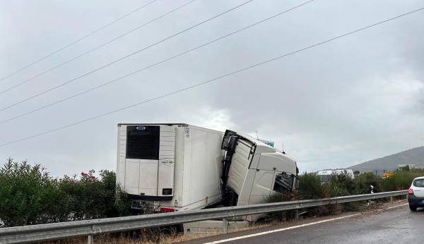 Un camión ha volcado en la A-316, kilómetro 55, a su paso por Jaén capital, sobre las 14:00 horas. Los servicios de Emergencias del 112 han afirmado que el accidente se debe a un reventó de una de las ruedas del vehículos. Asimismo, el conductor se encuentran bien, aunque con dolor de pecho.