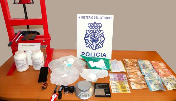 También se localizó una prensa hidráulica de grandes dimensiones, que era utilizada para el prensado y empaquetado de la sustancia estupefaciente. Reseñable el hecho de que la sustancia estupefaciente se encontraba oculta junto a una de las básculas, con restos de esta sustancia, oculto en el interior de un bolso de color negro, en un habitáculo perfectamente preparado a conciencia, ya que el mecanismo de apertura era por presión, y se encontraba tras una baldosa, la cual formaba parte del zócalo de la leñera y cocina. Dicha sustancia, alcanzaría un valor en el mercado ilícito de 100.000 euros aproximadamente, según la “tabla de precios y purezas medias de las drogas en el mercado ilícito, correspondientes al primer semestre de 2025”, una vez sometida a un tratamiento de corte y dispuesta para la venta por gramos. Una vez puesto el detenido a disposición judicial, el Juzgado de Instrucción número Cuatro decretó el ingreso en prisión sin fianza del mismo, por parte de la Autoridad Judicial.