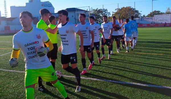El equipo local sale con camisetas de apoyo a Toni