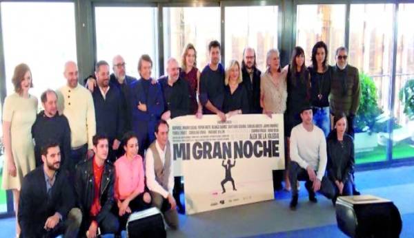 La define como “frenética”. “Espero que el espectador se divierta intentando sobrevivir a la misma”. Es Mi gran noche, la nueva película de Álex de la Iglesia, con el linarense más universal como protagonista. Raphael, Hugo Silva, Pepón Nieto, Santiago Segura, Carmen Machi, Carlos Areces, Mario Casas, Blanca Suárez, Enrique Villén, Jaime Ordóñez, Terele Pávez, Carolina Bang, Luis Callejo, Ana Polvorosa, Luis Fernández, Antonio Velázquez, Carmen Ruiz y Tomás Pozzi son algunos de los actores que forman el reparto y estuvieron en la presentación del rodaje. La película, producida por Enrique Cerezo y Telefónica Studios, pretende tener un “ritmo frenético” y los personajes “van abalanzándose sobre el espectador de una manera muy violenta”, según el director.